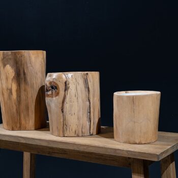 מבחר נרות מעוצבים מעץ.