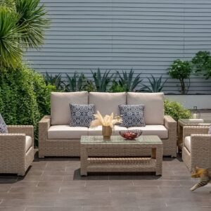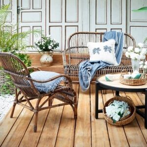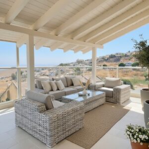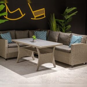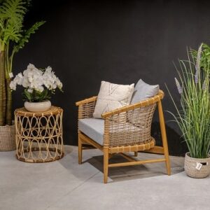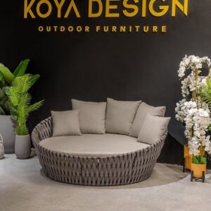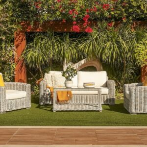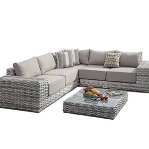 - ראטן דמוי טבעי וריפוד אפור