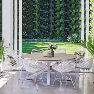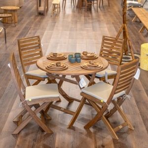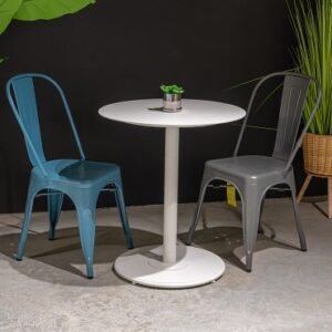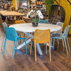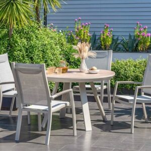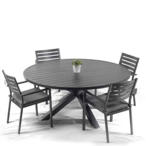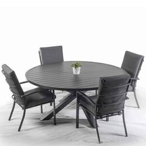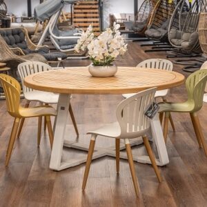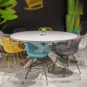 שולחן ברצלונה עגול בשילוב כיסאות קאן