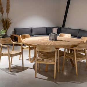 שולחן סאן עגול 180 קוטר בשילוב 6 יורק