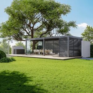 פרגולה אלומיניום לגריל / מנגל בשילוב מדפים