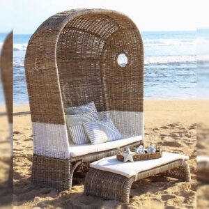 - ראטן חום שוקולד, ריפוד וגג אפור קרם.