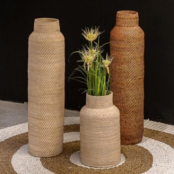כד מעוצב במיוחד עשוי ראטן טבעי.