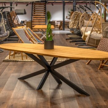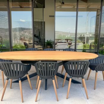 שולחן אובאלי מרשים אשר מתאים גם לשימוש חוץ.