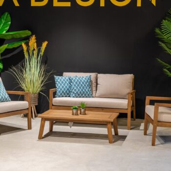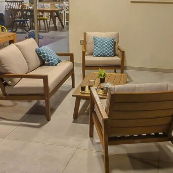 המערכת כוללת ספה זוגית, 2 ספות יחיד ושולחן.