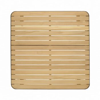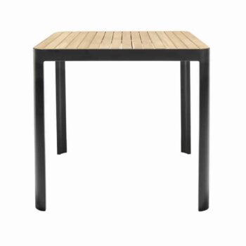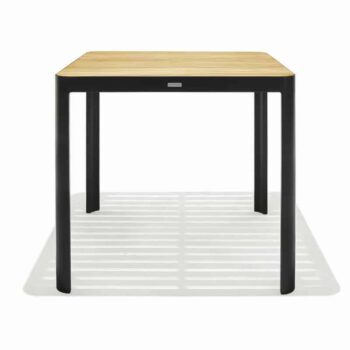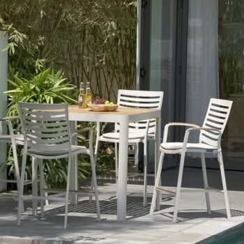 שולחן בר אלומיניום “אלד חלד” בשילוב לוחות עץ טיק אינדונזי.