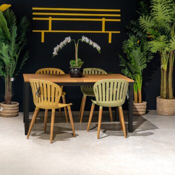 השולחן בנוי משלדת אלומיניום “אל חלד” בשילוב עץ אקליפטוס FSC מלא.