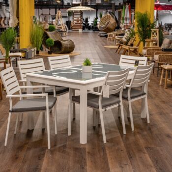 שולחן אוכל יוקרתי וחזק במיוחד מדגם מדריד בשילוב 6 כיסאות קומט.