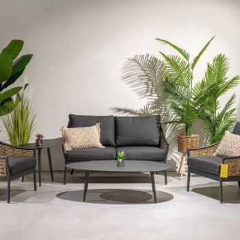אלומיניום שחור, ראטן דמוי טבעי, ריפוד שחור. אזל זמנית.